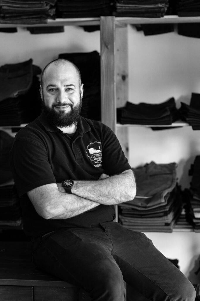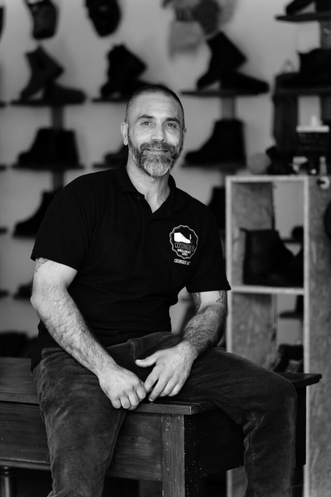 Il titolare e fondatore dell’azienda Cosingius. Porta avanti questa piccola azienda con passione e impegno costante. È lui che ci mette la faccia: lo vedete spesso sui social, impegnato a farvi vedere come si cuce a mano una suola o a mostrarvi l’ultimo modello di Cosingius. Si occupa un po’ di tutto: lo trovate sia in negozio a contatto con i clienti, che in laboratorio che cuce scarpe o che taglia tomaie, che in giro per le fiere o in cerca di nuovi fornitori.