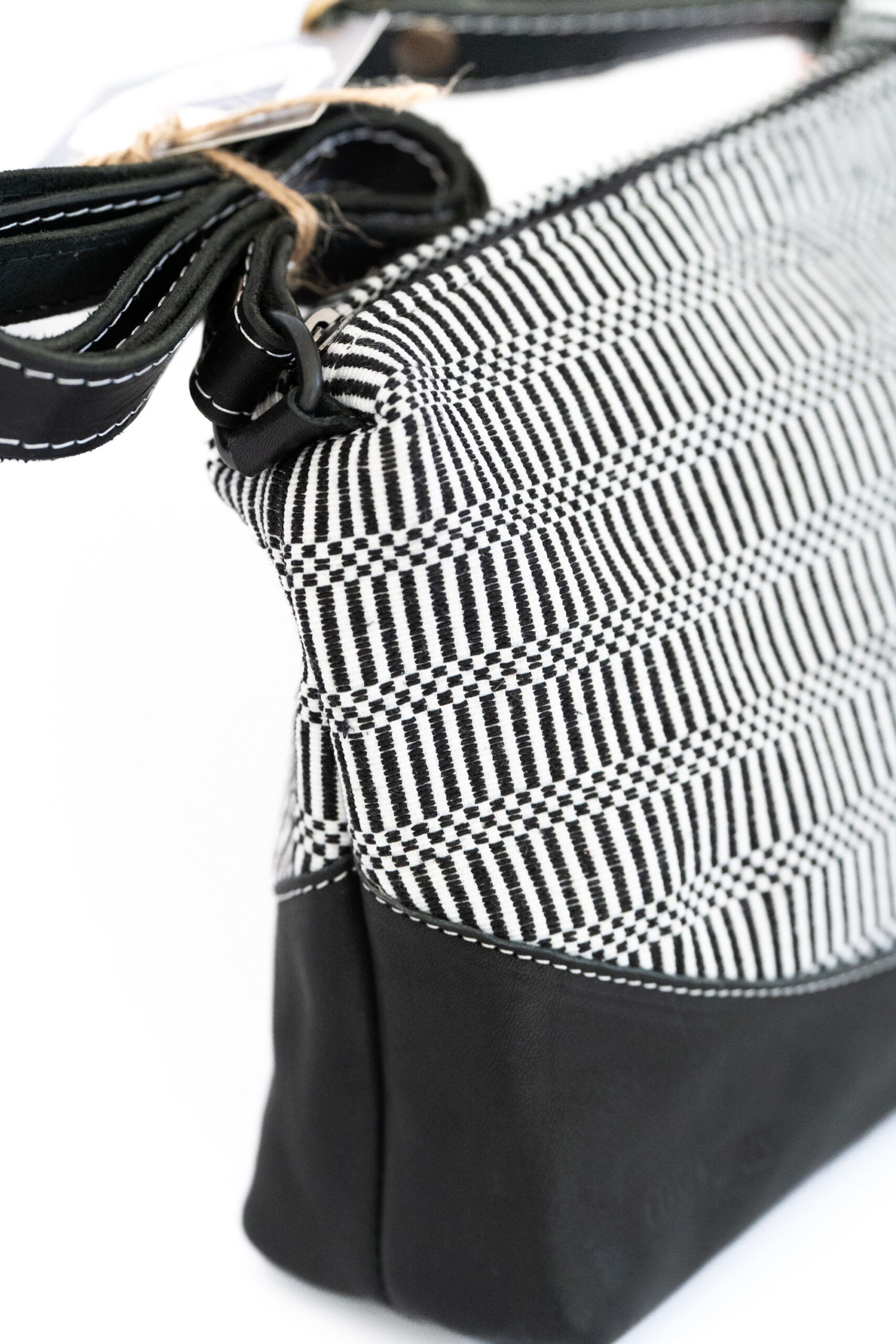 Tracolla in pelle con tessuto bertula